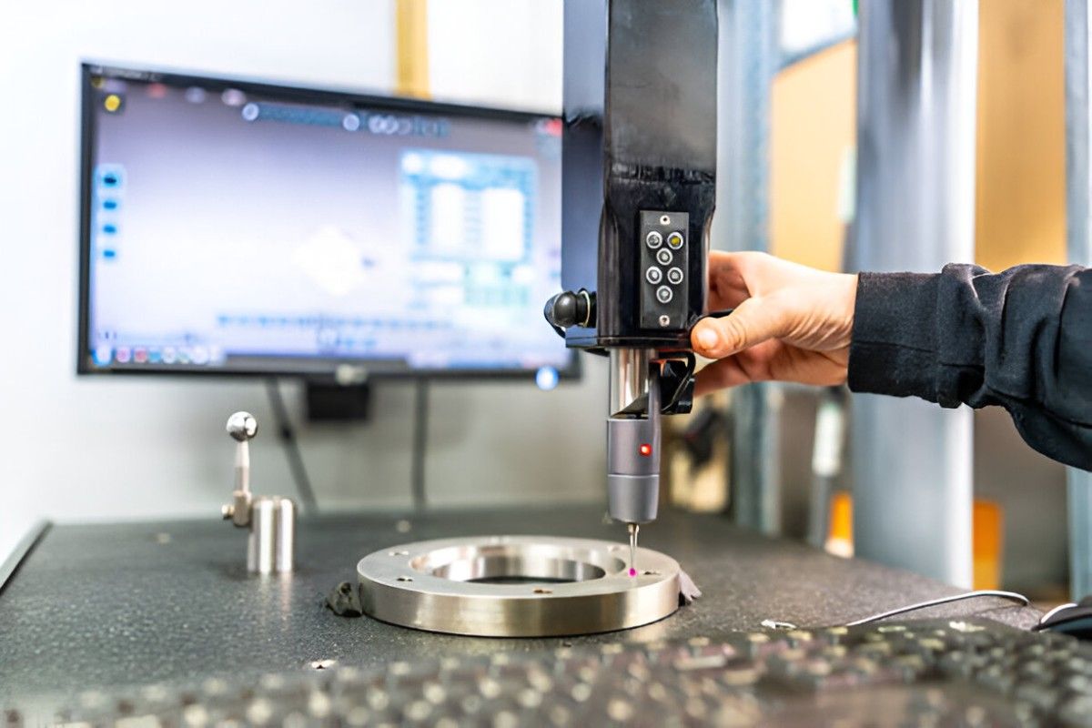 Image Description: An engineer checking prototype dimensions using 3D tools.