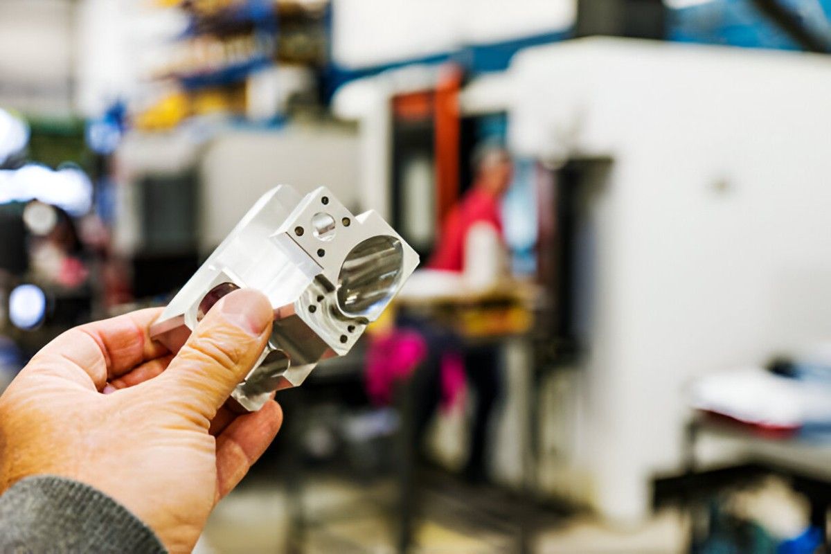 Image Description: A person holding a CNC-machined prototype part, showing its strength and durability.