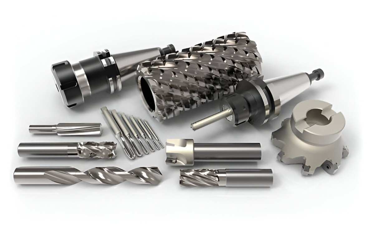Image Description: Milling bits and tools neatly displayed on a white background.