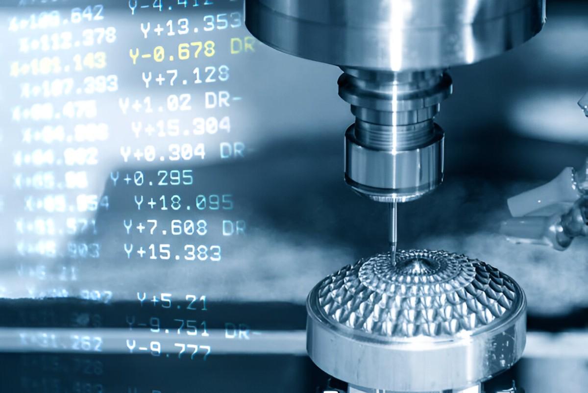 Image Description: A 3-axis CNC milling machine and G-code data background.