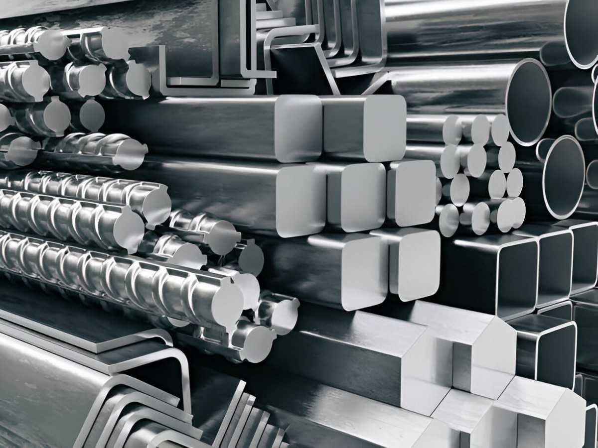 Image Description: Stainless steel profiles, bars, and tube stock arranged for use in CNC milling.