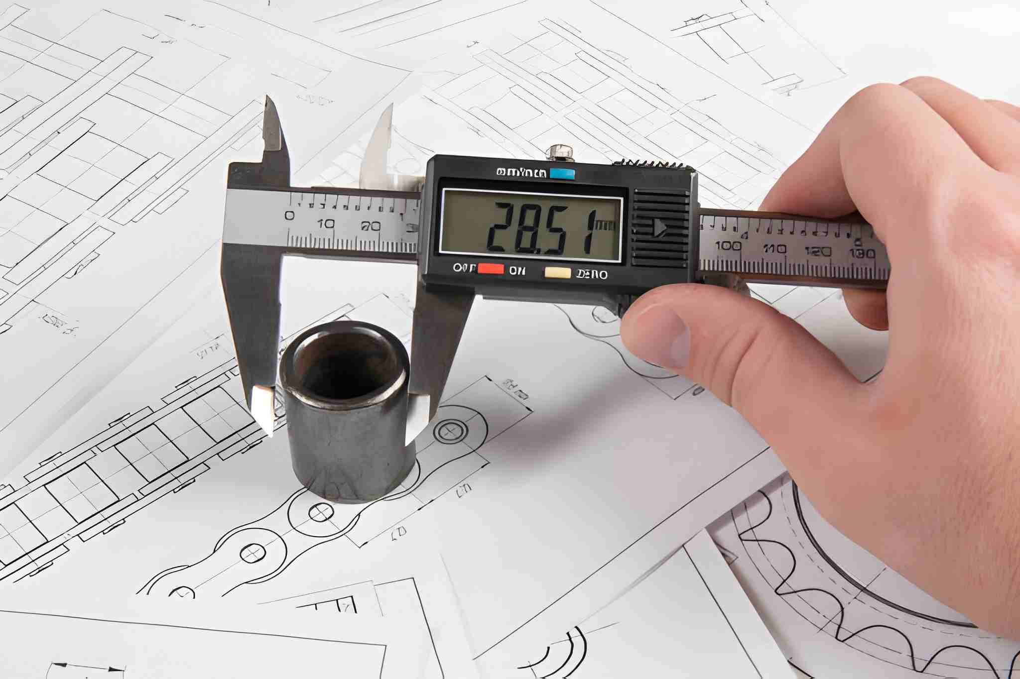 Image Description: The image shows an engineer measuring a machined metal part with a precision instrument to check its dimensional accuracy.