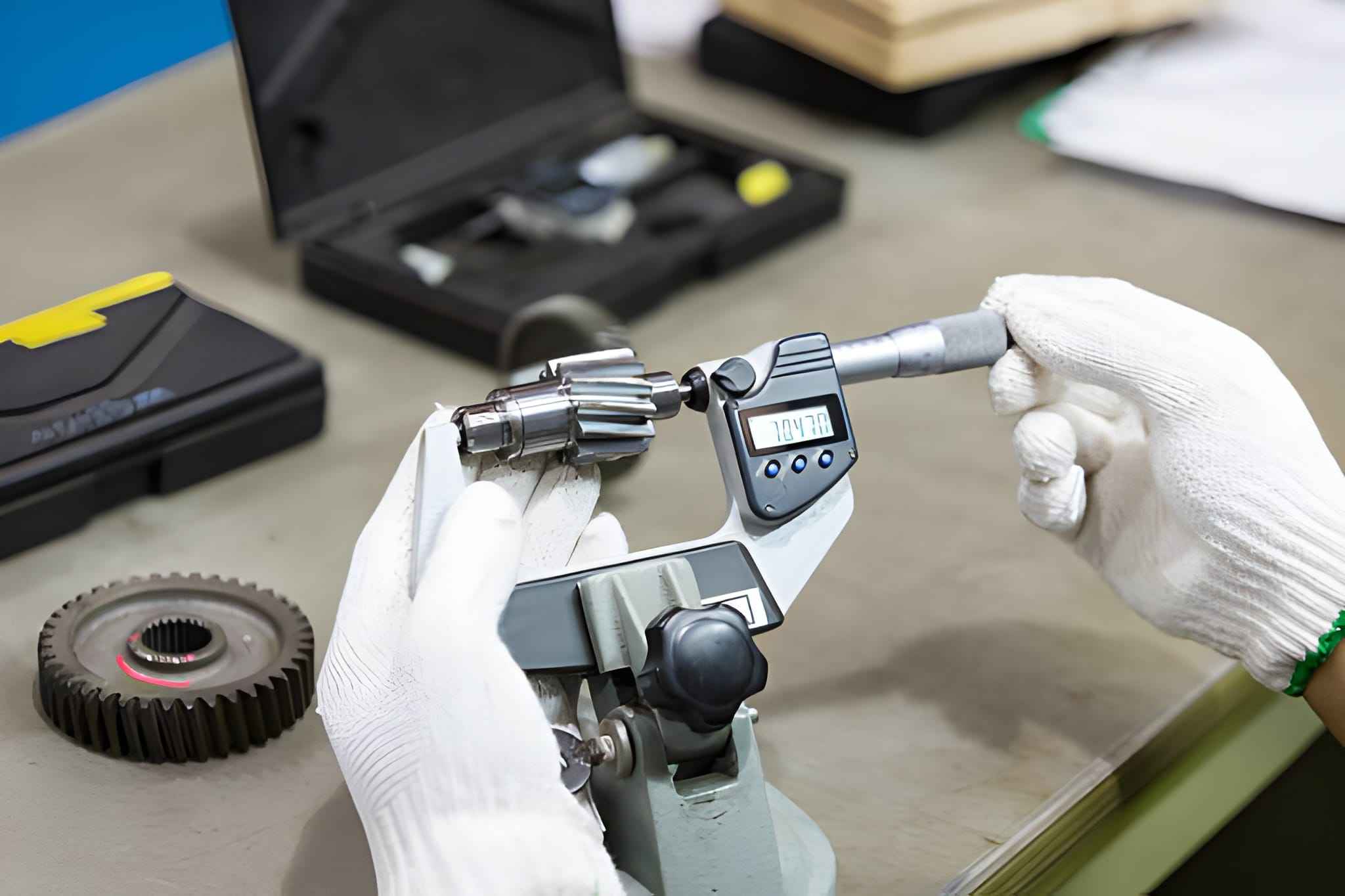Image Description: An engineer measuring the dimensions of machined parts during quality control inspection.