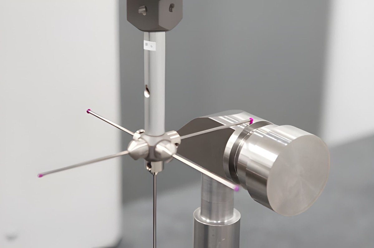 Image Description: A close-up of a CMM probe with a ruby tip, focusing on the stylus and sensing mechanism used for high-precision contact measurement.