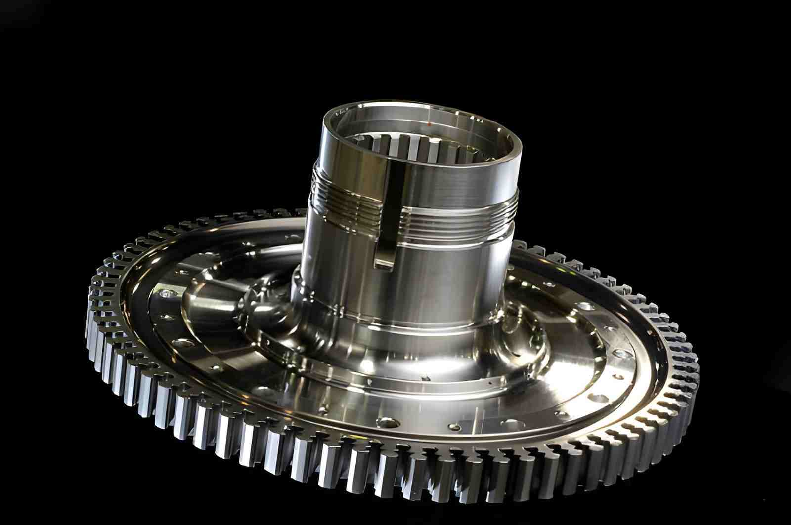 Image Description: The image shows a complex aerospace component with intricate geometry and precision machining.