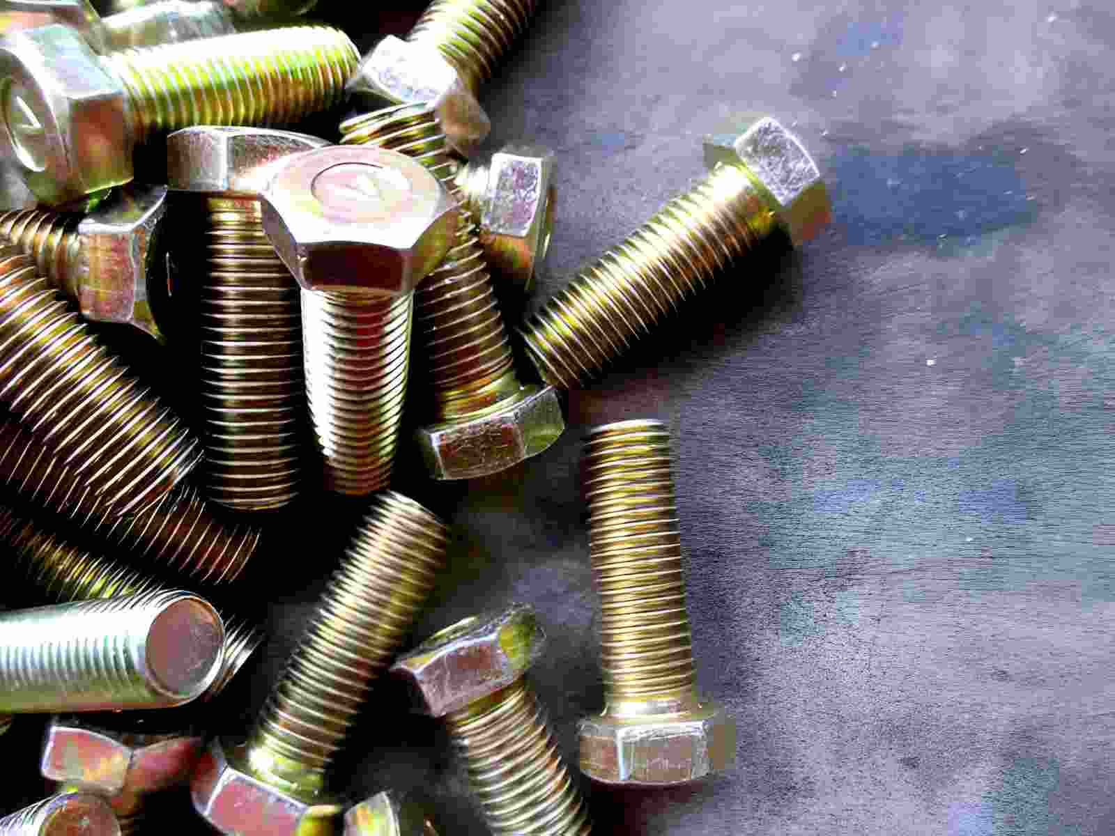 Image Description: The image shows a close-range view of steel bolts with a zinc-plated surface finish.